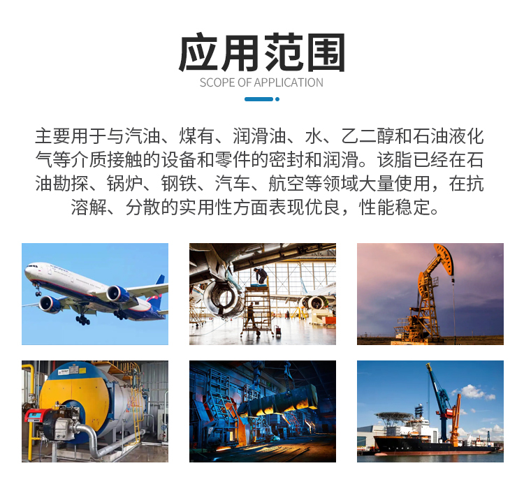 長(zhǎng)城牌7903耐油密封潤(rùn)滑脂是以無(wú)機(jī)稠化劑稠化合成油并加入抗氧劑、防腐劑等制成的,性能針對(duì)無(wú)油較多的場(chǎng)景而研發(fā)。具備良好的耐油性能、潤(rùn)滑性能、粘附性、高溫型、抗氧化性和耐壓抗震、不固化性能。主要用于與汽油、煤油、潤(rùn)滑油、水、乙二醇和石油液化氣等介質(zhì)接觸的設(shè)備和零件的密封和潤(rùn)滑。該脂已經(jīng)在石油勘探、鍋爐、鋼鐵、汽車、航空等領(lǐng)域大量使用,在抗溶解、分散的實(shí)用性方面表現(xiàn)優(yōu)良,性能穩(wěn)定。